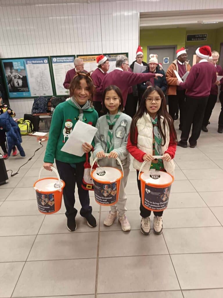 What could have been an awkward mix-up soon became a magical moment of community unity. Children from the Scouts, Beavers and Cubs joined voices with the Epsom Male Voice Choir, creating an inter-generational chorus of festive favourites. Commuters paused to listen, sing along and donate, with a highlight of the night being a lively rendition of “The Twelve Days of Christmas” that had everyone smiling.